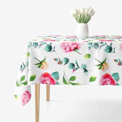 Goldea hranatý obrus 100% bavlnené plátno – veľké kvety pivonky 120 x 180 cm