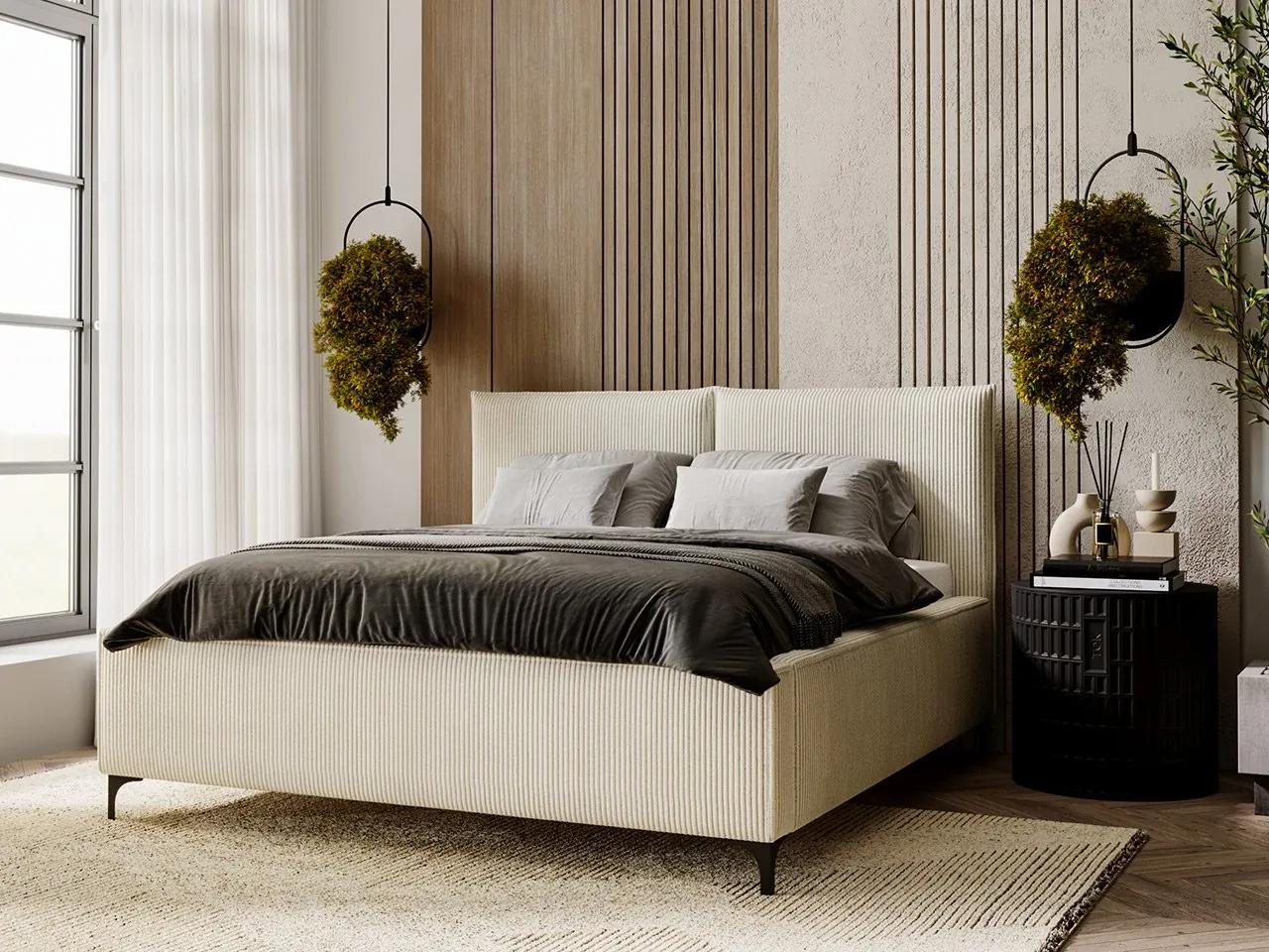 Manželská posteľ do spálne Camtalo zaujme svojím moderným a štýlovým dizajnom. Jej čalúnené záhlavie a rám s výraznou manšestrovou povrchovou úpravou jej dodávajú nevšedný charakter.Jednou z hlavných výhod tejto postele je zabudovaný kontajner na posteľnú bielizeň. Vďaka tomuto riešeniu maximálne využijete priestor vo vašej spálni. Jednoduchým zdvihnutím matraca získate prístup k priestrannému úložnému priestoru, do ktorého môžete uložiť posteľnú bielizeň, prikrývky, vankúše a ďalšie doplnky.Rozmery:120:dĺžka: 214 cm, šírka: 140 cm, výška: 108 cm, plocha na spanie: 200 x 120 cm,rozmery jedného úložného priestoru (posteľ má dva): dĺžka: 200 cm, šírka: 60 cm, výška: 16 cm,140:dĺžka: 214 cm, šírka: 160 cm, výška: 108 cm, plocha na spanie: Rozmery: 200 x 140 cm,rozmery jedného úložného priestoru (posteľ má dva): dĺžka: 200 cm, šírka: 70 cm, výška: 16 cm,160: dĺžka: 214 cm, šírka: 180 cm, výška: 108 cm, plocha na spanie: Rozmery: 200 x 160 cm, rozmery jednej priečky (posteľ má dve): dĺžka: 200 cm, šírka: 80 cm, výška: 16 cm,180: dĺžka: 214 cm, šírka: 200 cm, výška: 108 cm, plocha na spanie: 200 x 180 cm, rozmery jednej komory kontajnera (posteľ má dve): dĺžka: 200 cm, šírka: 90 cm, výška: 16 cm,200:dĺžka: 214 cm, šírka: 220 cm, výška: 108 cm, plocha na spanie: 200 x 200 cm,rozmery jednej komory kontajnera (posteľ má dve): dĺžka: 200 cm, šírka: 100 cm, výška: 16 cmPrevedenie:konštrukcia: 15 mm hrubá drevotrieska + borovicové drevo + 1 cm hrubá pena T25,čelo postele: 15 mm hrubá drevotrieska + 3 cm hrubá pena T25,lamelový rošt na kovovom ráme je v cene,nádoba na podstielku je vybavená plynovou pružinou, ktorá uľahčuje otváranie lôžka,kovové nohy,posteľ je voľne stojaca – chrbát je potiahnutý látkou (spojenie prvkov opierky hlavy je viditeľné),matrac – nie je súčasťou sady, dá sa upraviť a dokúpiť z ponukyZáruka: 24 mesiacov