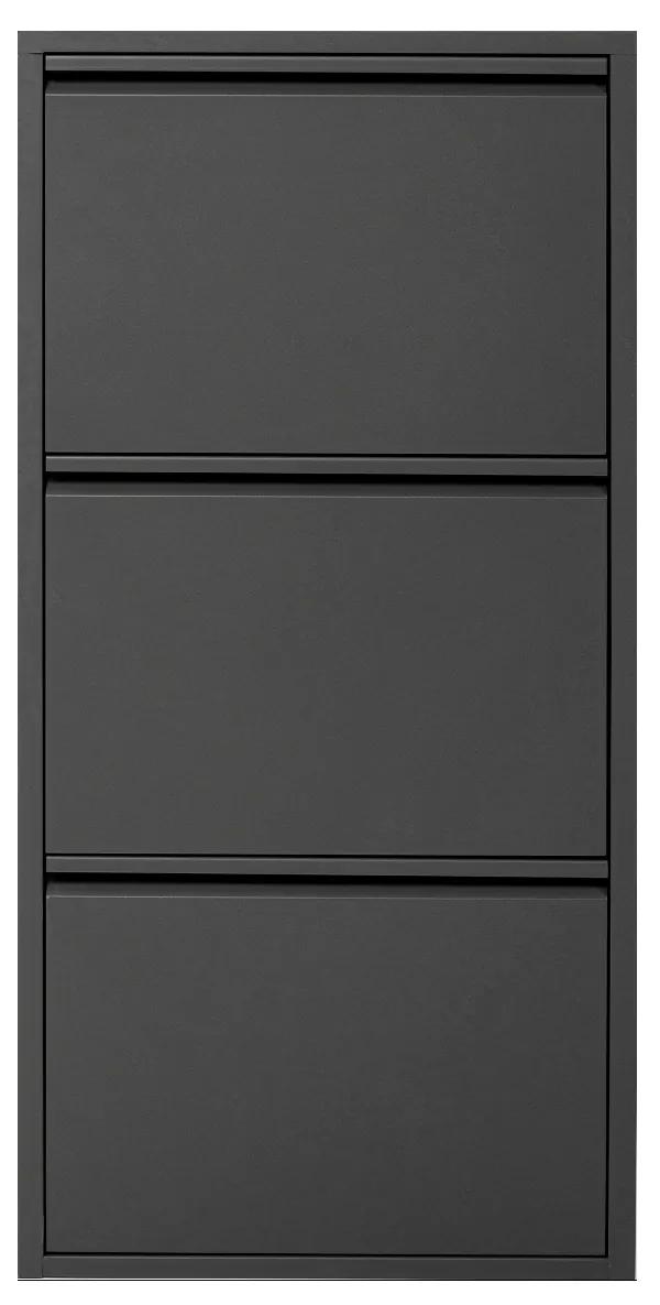 Praktický kovový botník s tromi policami v čiernom prevedení.