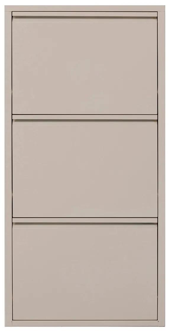 Praktický kovový botník s tromi policami v krémovom prevedení.