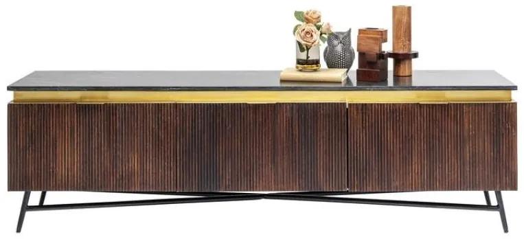 Tmavá skrinka Catalina z masívneho dreva a mramorovou doskou v originálnom dizajne.