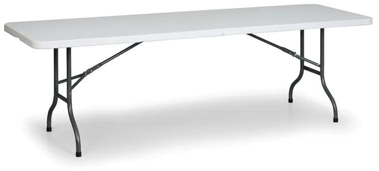 · stoly sú vhodné hlavne pre catering, sú jednoducho skladacie a pritom veľmi stabilné s vysokou nosnosťou · využiteľnosť stolov sa však nájde vo všetkých oblastiach, kde je potrebné rýchle, trvalé alebo dočasné použitie stola · konštrukcia je z oceľových trubiek s priemerom 28 a 19 mm. Zaisťovací mechanizmus po rozložení je tiež oceľový · dosky stolov a lavíc sú vyrobené z vysokopevnostného HDPE materiálu · dosky stolov a lavíc sú v spodnej časti profilované a vytvárajú tak priestor pre podnožie v zloženom stave · stoly sa dodávajú s doskou z jedného dielu a doskou polenou pre jednoduchší transport stolov, farba dosiek je svetlo sivá