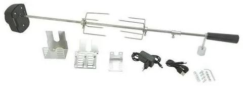 Univerzálna ihla vybavená motorom, na rovnomerné grilovanie mäsa bez pripálenia.Motor disponuje rýchlosťou 3 otáčky za minútu, čím zaisťuje rovnomerné grilovanie kurčiat, špízov a rôznych blokov mäsa, postupne zo všetkých strán. Motor je možné napájať zo štandardnej zásuvky 230 V alebo pomocou USB kábla (5 V) napríklad z powerbanky. Vďaka niekoľkým priloženým adaptérom je táto grilovacia ihla univerzálna pre použitie na celom rade grilov, ktoré majú v grilovacom priestore pripravené otvory na montáž tohto zariadenia.Súčasťou príslušenstva k ihle je aj balančné závažie, ktoré je možné použiť v prípade, že grilované mäso na ihlici nie je vyvážené a sťažuje otočenie cez vrchol záťaže „prevalenia“ motora.Komplet motora a ihly z nehrdz, ocele má dĺžku 94 cm, bez použitia predlžovacieho člena je celková dĺžka 84 cm.