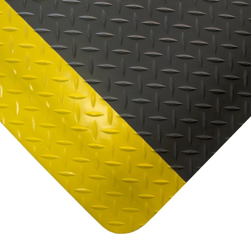 · vzor diamantu zlepšuje protišmykovú funkciu · vhodná hlavne na statickú prácu v stoji (nie je vhodná pre miesta, kde dochádza k častému pohybu napr. pre obsluhu v obchodoch, na benz. pumpách pod.) · žlté lemovacie hrany po dlhšej strane pre zvýšenie bezpečnosti · na rohoži s rozmerom 0,9 x 1,5 m sú skosené všetky 4 nábehové hrany · materiál: PVC pena