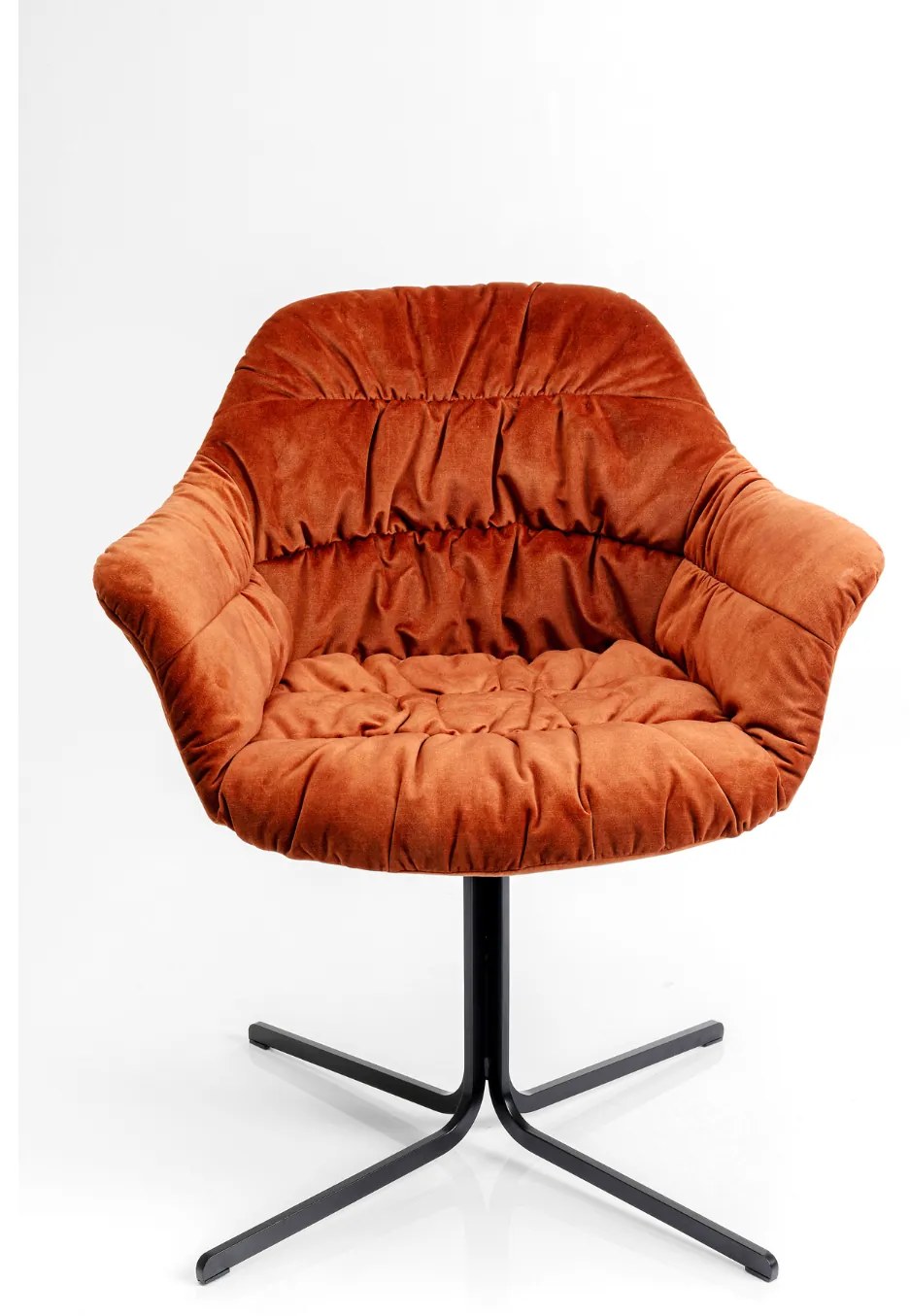 Prepracovaná otočná stolička s podrúčkami a objemným čalúnením.