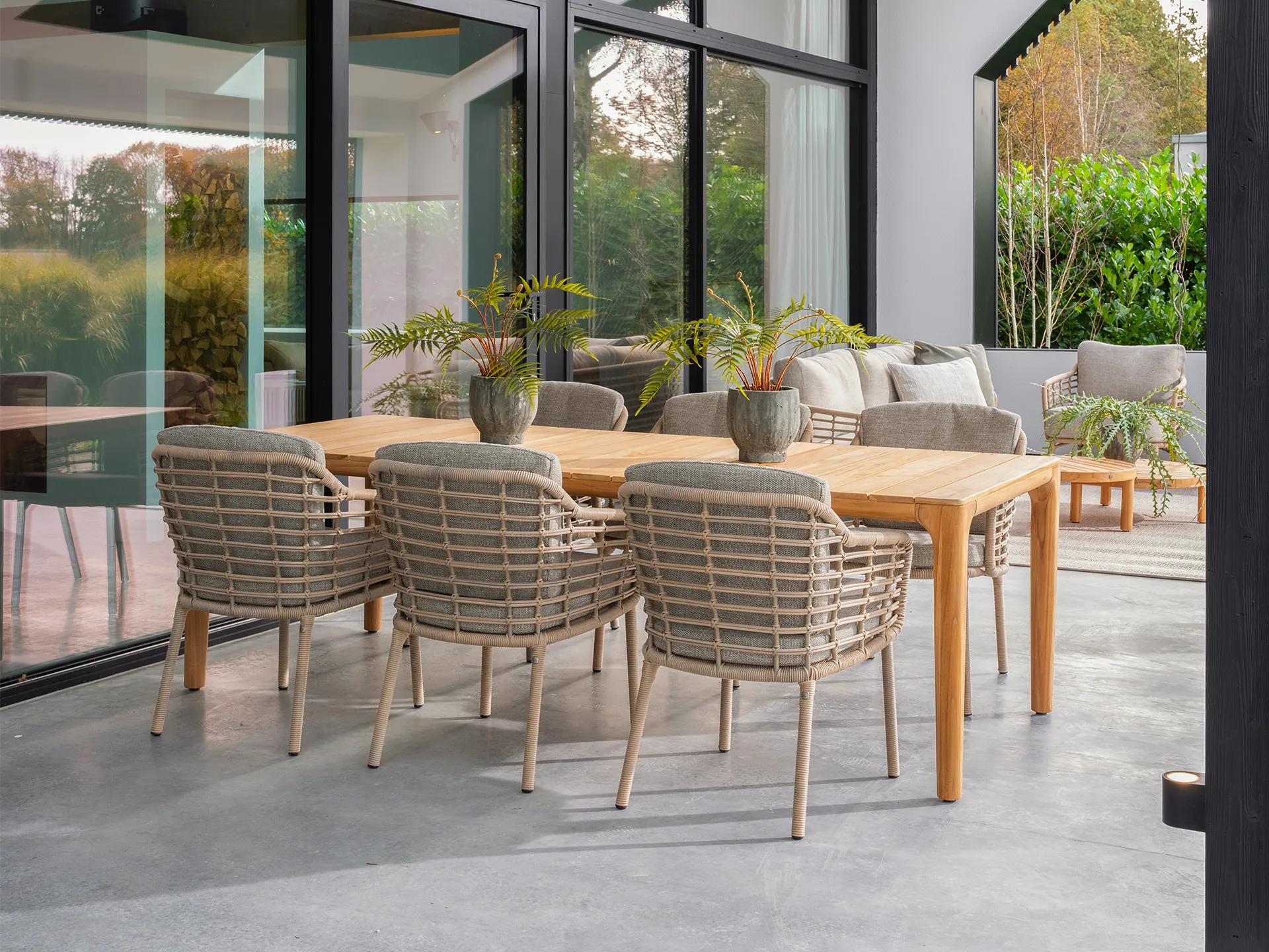 Dodajte vašej vonkajšej terase dávku elegancie a pohodlia so stolovou súpravou Como.