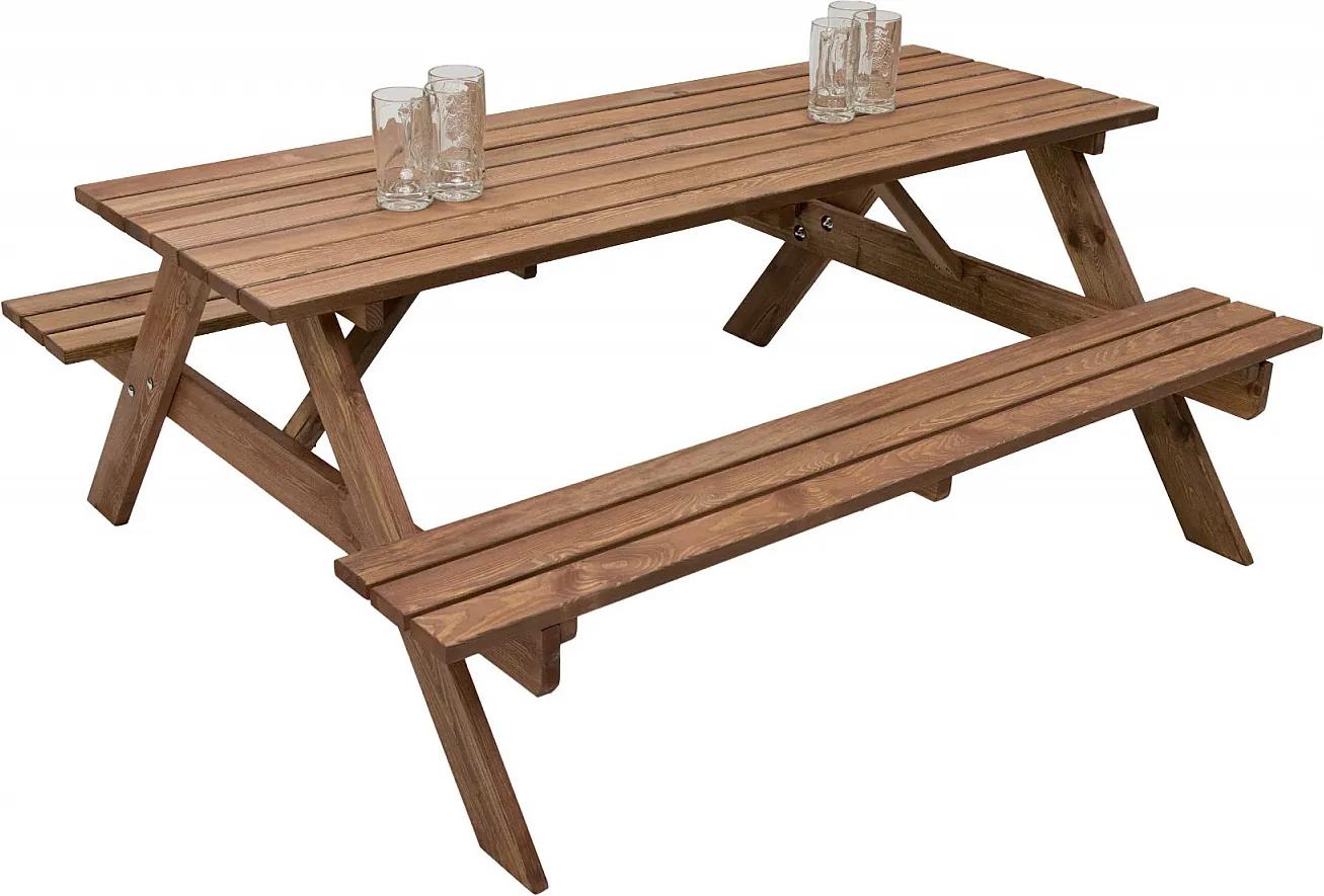 Pivný set sa skladá zo stola a dvoch lavíc, ktoré sú spojené k stolu.