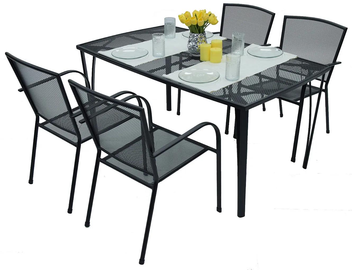 Sestava obsahuje: 1x Kovový stôl ASTOR (150 x 90 cm), 4x Kovová stolička MAYA (čierna)