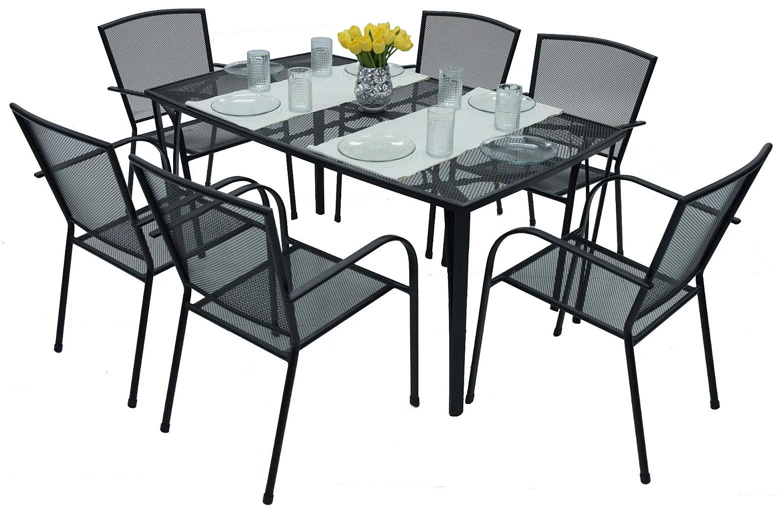 Sestava obsahuje: 1x Kovový stôl ASTOR (150 x 90 cm), 6x Kovová stolička MAYA (čierna)