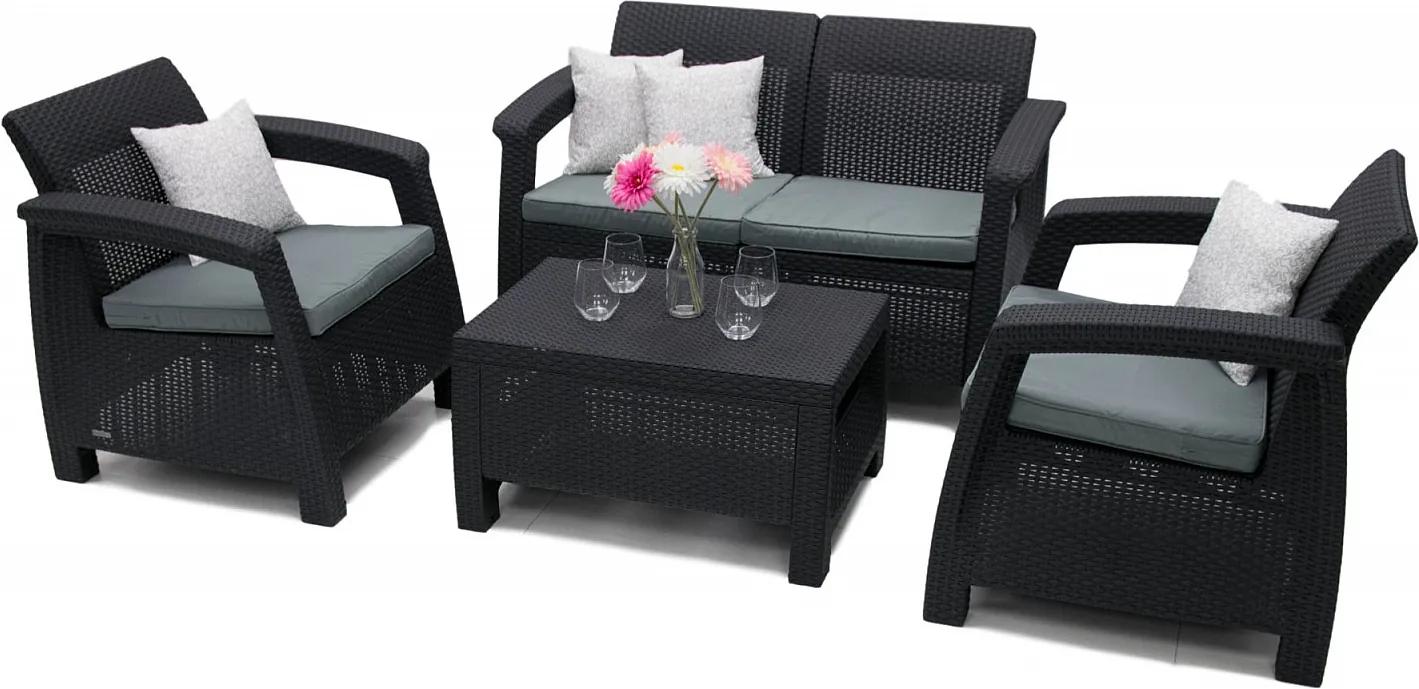 Celoplastová konštrukcia – nezrezne, neztrouchniví, nikdy sa nerozplete (jedná sa o veľmi pevnú konštrukciu, ktorá znesie naozaj veľké zaťaženie) Nikdy sa nerozplete. Konštrukcia, výplet aj vankúše odolávajú výkyvom počasia, poveternostným podmienkam, vode i UV žiareniu