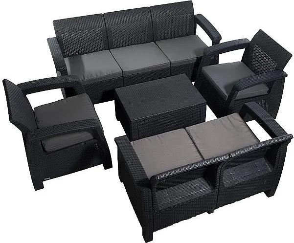 Sestava obsahuje: 1x Záhradná ratanová pohovka CORFU LOVE SEAT MAX (antracit), 1x Záhradná ratanová zostava CORFU antracit