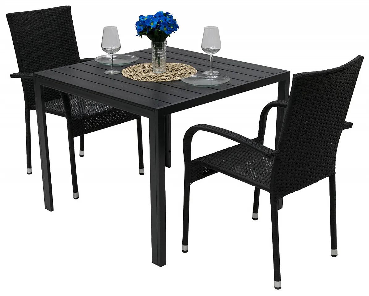 Vyberte si nové záhradné posedenie online z pohodlia domova! Preskúmajte všetky záhradné zostavy z umelého ratanu a urobte si radosť kvalitným záhradným nábytkom. Sestava obsahuje: 2x Ratanové kreslo stohovateľné SIENA (čierna), 1x Hliníkový stôl TRENTO 90 x 90 cm
