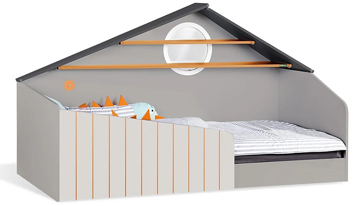 Detská posteľ Thor v jedinečnom prevedení domčeka je vymyslená podľa Montesorri výchovy spočívajúcou vo výučbe dieťaťa skúseností, ktorá mu umožňuje stať sa sebestačným. Posteľ preto umožňuje vstup až pri prednom čele, navyše je v menšej výške od podlahy, aby dieťa malo voľnosť pohybu. Ostatné časti sú ohradené a dieťaťu tak nebude chýbať ani pocit bezpečia. Nosnosť postele je 110kg a súčasťou je doskový rošt s ložnou plochou 100x200cm. Matrac v tomto rozmere je potrebné dokúpiť. Obohacujúcimi prvkami sú dotykové svetlo na čele postele, dekoratívne okienko z tvrdeného skla a dve úložné police.