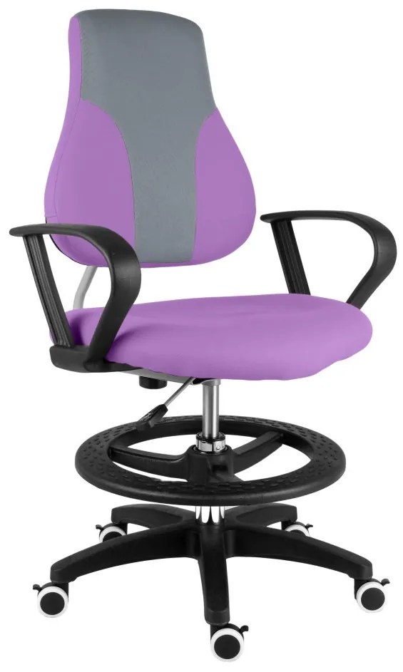 Stolička je svojou výbavou uspôsobená na to, aby sa na ňu mohlo pohodlne posadiť každé dieťa. Chrbtová opierka je výškovo a hĺbkovo nastaviteľná podľa potreby a sedák je zase možné posúvať vpred a vzad. Obe časti sú nielen pohodlné, ale aj ergonomicky tvarované tak, aby deťom pomohli udržať si pri sedení zdravé držanie chrbta. Pre menšie deti má stolička vo výbave praktický kruh slúžiaci ako výškovo nastaviteľná opierka na nohy, ktorú môžete kedykoľvek odmontovať. Pri dlhom písaní prídu vhod aj pevné podrúčky. Stolička je otočná aj výškovo nastaviteľná.