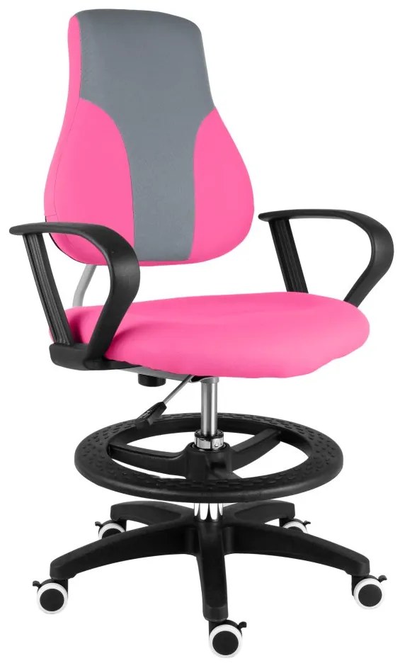 Stolička je svojou výbavou uspôsobená na to, aby sa na ňu mohlo pohodlne posadiť každé dieťa. Chrbtová opierka je výškovo a hĺbkovo nastaviteľná podľa potreby a sedák je zase možné posúvať vpred a vzad. Obe časti sú nielen pohodlné, ale aj ergonomicky tvarované tak, aby deťom pomohli udržať si pri sedení zdravé držanie chrbta. Pre menšie deti má stolička vo výbave praktický kruh slúžiaci ako výškovo nastaviteľná opierka na nohy, ktorú môžete kedykoľvek odmontovať. Pri dlhom písaní prídu vhod aj pevné podrúčky. Stolička je otočná aj výškovo nastaviteľná.