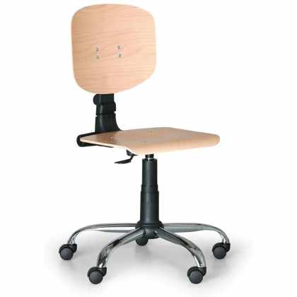 Antares Dielenská pracovná drevená stolička na kolieskach, oceľový kríž, kolieska