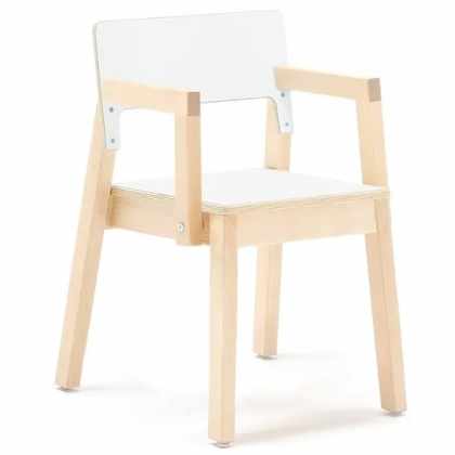 Detská stolička LOVE s opierkami rúk, V 380 mm, breza, laminát – biela