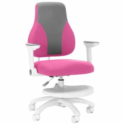 Detská rastúca stolička Neoseat KINDER WHITE — látka, šedá / tmavo ružová