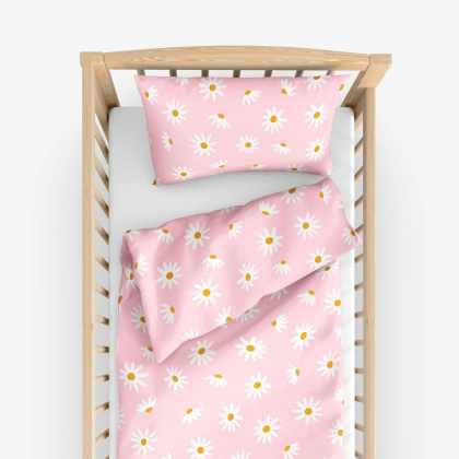 Goldea detské bavlnené obliečky do postieľky – kvety margarétok 100 x 135 a 40 x 60 cm