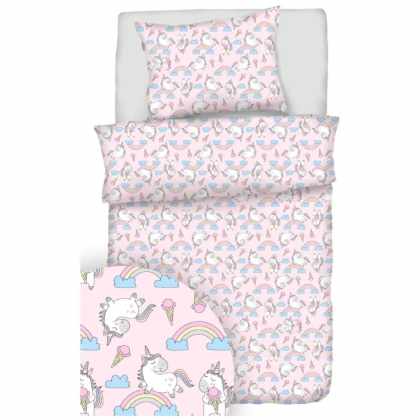 Obliečky bavlnené Jednorožec ružový TiaHome – 1x Vankúš 90x70cm, 1x Paplón 140x200cm