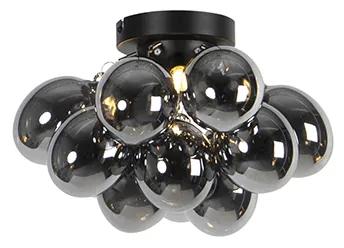 Dizajnové stropné svietidlo čierne s dymovým sklom 3-svetlé – Uvas