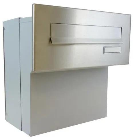 DOLS F-041 ČD-1 Nerezová uzamykateľná poštová schránka na zamurovanie, s nastaviteľnou hĺbkou. Možno dokúpiť nerezový L profil na orámovanie zadných dvierok a začistenie stavebného otvoru (k nájdeniu v sekcii príslušenstvo).