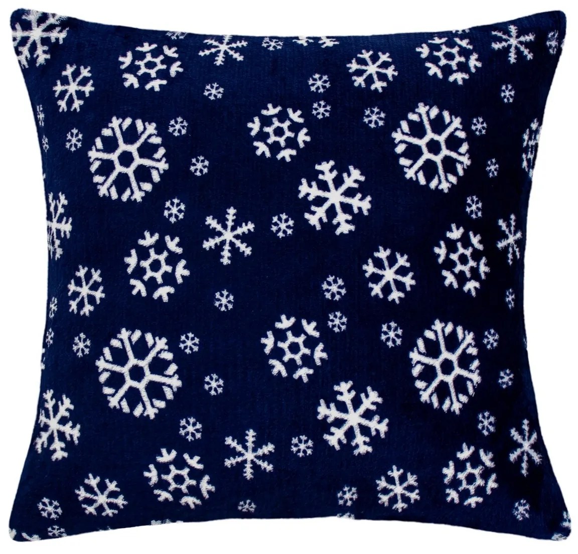 Dekoratívny vankúšik v slávnostnom štýle, prinesie hrejivú vianočnú atmosféru do každého interiéru. Obliečka je vyrobená z kvalitnej látky v elegantnej modrej farbe, zdobená decentnou bielou aplikáciou. Dizajn sa vyznačuje tradičným vianočným motívom – jemné snehové vločky rôznych tvarov, čo vytvára harmonickú kompozíciu, ktorá dokonale podčiarkuje zimnú atmosféru. Ideálne ako dekoratívny prvok na pohovku, kreslo alebo posteľ, dodáva šmrnc a eleganciu a zároveň vnáša do miestnosti útulnosť a slávnostnú náladu.