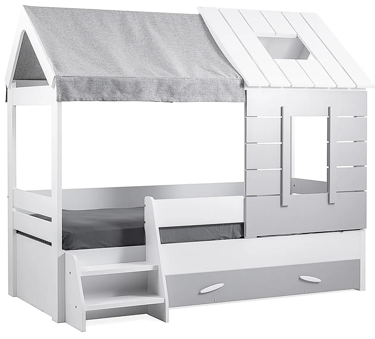 Zábavná posteľ poteší každé dieťa. Zaujme predovšetkým svojim tvarom, ktorý kopíruje domček. Postieľka je inšpirovaná metódou montessori, kedy má dieťa možnosť rozvíjať svoje schopnosti – ustlať si, byť schopný sám z postieľky zliezť a pod. V streche a zboku nájdeme okná, čo pre dieťa vytvorí pocit bezpečia. Druhá polovica striešky je potom prekrytá textíliou. Zo všetkých strán sa nachádza zábrana, teda nehrozí riziko pádu. Posteľ je vyvýšená vďaka dvom schodíkom. Súčasťou postieľky je laťový rošt, matrac je ale potrebné zakúpiť samostatne.