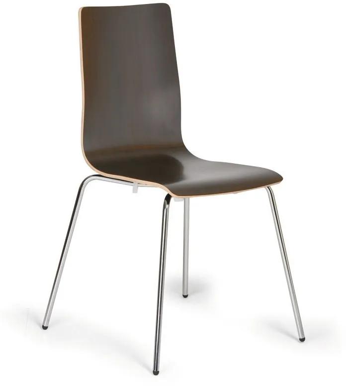 · jednoduchá stohovateľná drevená škrupinová stolička s mnohostranným využitím · tvarovaná škrupina stoličky z preglejky hr. 9 mm v dvoch farebných vyhotoveniach (buk alebo morené na odtieň wenge) · pochrómovaná kovová konštrukcia stoličky · nohy sú vybavené plastovými koncovkami · nosnosť 110 kg · produkt je dodávaný v rozloženom stave
