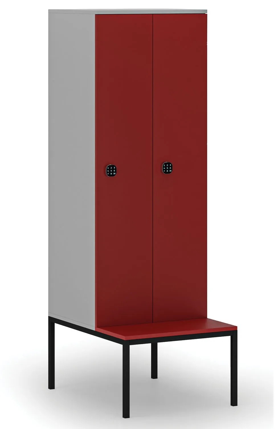 Domů > Obchod > Drevená šatníková skrinka s lavičkou, 2 oddiely, 1871 x 600 x 500/800 mm, kódový zámok, sivá / červená