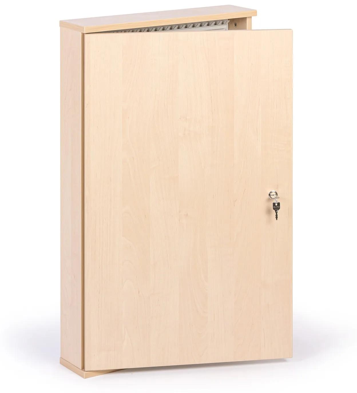 · skrinka na kľúče z laminovanej drevotriesky v dekore brezy · vybavená cylindrickým zámkom · montážny materiál je súčasťou balenia