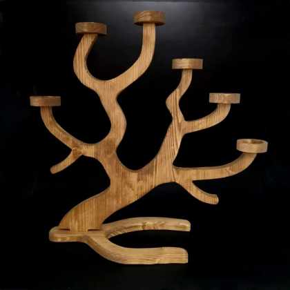 AMADEA Drevený svietnik vetva, tmavý, masívne drevo, výška 45 cm