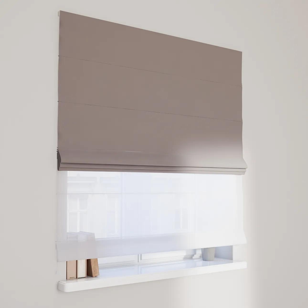 Rímska roleta Duo kombinuje funkciu závesu a záclony.Má dva mechanizmy na vyťahovanie rolety, pre vrchnú(dekoračná) látku na pravej strane a pre záclonu- (voal)na ľavej strane. Kanály sa nachádzajú v prednej časti žalúzie*.