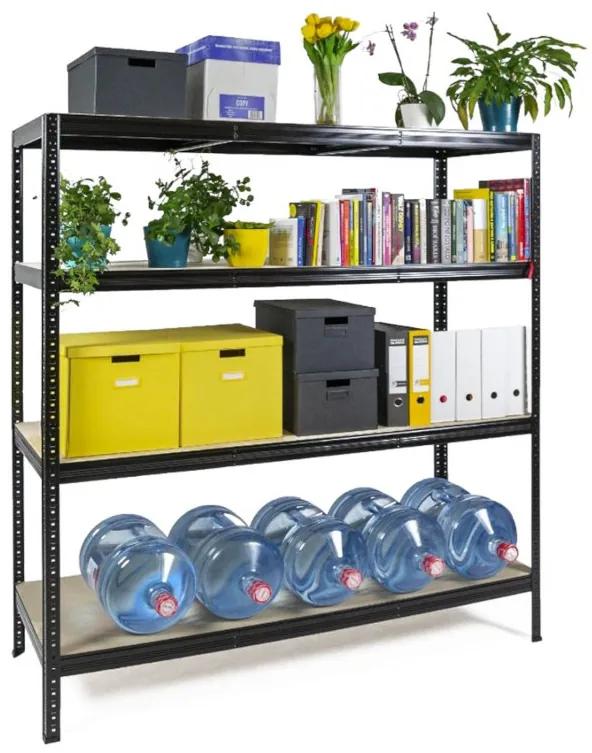 Akčný balíček: 20x Regál 1800x1600x600 mm lakovaný 4-policový, nosnosť 700 kg – ČIERNY