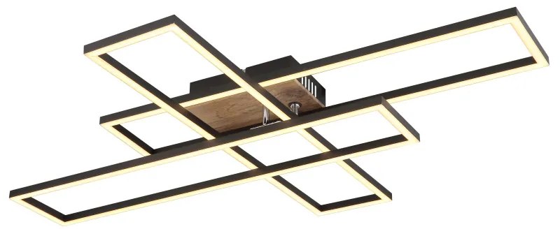 Stropné svietidlo, kov čierny, MDF vzhľad dreva tmavý, hliník čierny, plast biely, chróm, polohovateľné, DxŠxV: 800x600x100mm, rozmery obdĺžnikov: 13 x 60 cm, vrátane LED 40W 230V, 4230lm zdroj, 1650lm výstup, 3000K