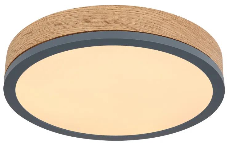 Stropné svietidlo, kov grafit, MDF vzhľad dreva, plast biely, ø: 300mm, V:85mm, vrátane LED 12W 230V, 1600lm zdroj, 950lm výstup, 3000K