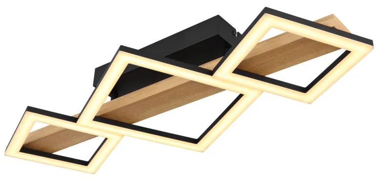 Stropné svietidlo kov čierny mat, MDF imitácia dreva, ABS čierny mat, plast biely, DxŠxV: 660x300x100mm, malé štvorce 16 x 16 cm, veľké štvorce 22 x 22 cm, LED 29W 230V, 2900lm zdroj, 1560lm výstup, 3000K
