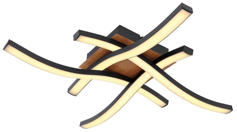 Stropné svietidlo, kov čierny, imitácia dreva, akryl biely, DxŠxV: 430x430x75, vrátane 1xLED 20W 230V, 2350lm zdroj, 1200lm výstup, 3000K