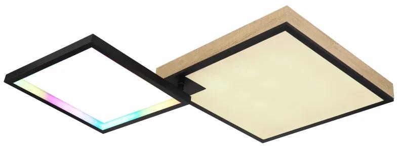 Stropné svietidlo kov čierny matný, MDF imitácia dreva, akryl opál, stmievateľné, niekoľko úrovní prostredníctvom nástenného spínača, RGB, pamäťová funkcia, diaľkové ovládanie, DxŠxV: 855x550x100mm, LED 40W+5W RGB 230V, 200-2000lm, CCT 2700-6500K
