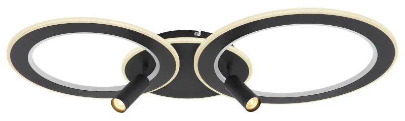 Stropné svietidlo kov čierny matný, akryl opál, stmievateľné, pamäťová funkcia, nočné svetlo, diaľkové ovládanie, RGB vo vnútri v 2 kruhoch, DxŠxV: 895x507x135mm, LED 60W+13W RGB 230V, zdroj 830-3500lm, výstup 555-2579lm, CCT 2700-6500K