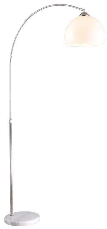 Stojanové svietidlo, kov, nikel matný, mramor, plast, biela, nastaviteľná výška, vypínač, DxŠxV:920x300x1960, bez žiarovky 1xE27, max. 40W 230V.