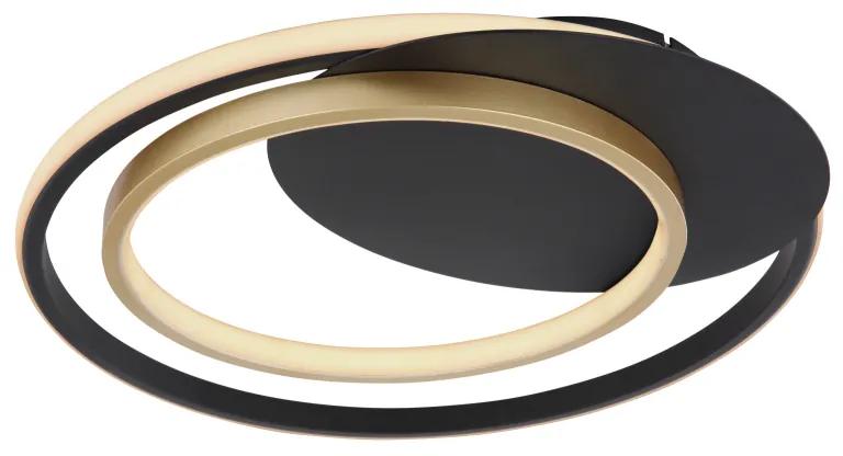 Stropné svietidlo, kov čierny, kov zlatý, akryl biely, pamäťová funkcia, nočné svetlo, stmievateľné, diaľkové ovládanie, fixácia farieb, DxŠxV: 485x465x60, vrátane 1xLED 36W 230V, 4500lm zdroj, 900lm výstup, zmena farby svetla 3000-6000K