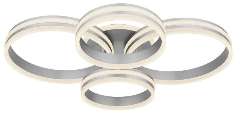 Stropné svietidlo kov sivý, akryl biely, stmievateľné, niekoľko úrovní cez nástenný spínač, pamäťová funkcia, nočné svetlo, diaľkové ovládanie, ø kruhov: 2x30cm, 2x40cm, DxŠxV:850x680x140mm,LED 90W 230V,zdroj 850-9960lm,výstup 350-4200lm,CCT2700-6000
