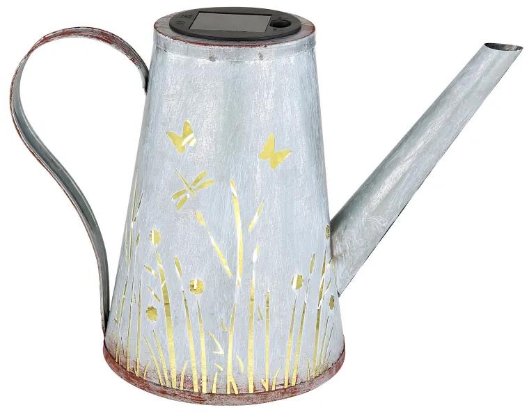 Solárne svietidlo, kov modrý antik, dekoratívne rezy, farba imitácia hrdze, plast čierny, vypínač, akumulátor AAA 300mAh 1.2V, IP44,DxŠxV: 270x140x190mm, vrátane LED 0.03W 1.2V, 3000K