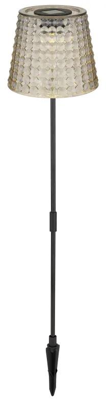 Solárne svietidlo, plast čierny, plast dymový, vypínač, vrátane batérií 40mAh 1.2V, IP44, tienidlo s krištáľovým vzhľadom, ø: 125mm, V: 600mm, set 2ks, vrátane LED 0.06W 3V, 3000K