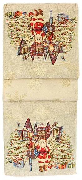 Gobelínový obrus Dedinka Santa Clausa, s prekrásnym motívom, ktorý vám vyčarí úsmev počas vianočných sviatkov. Nájdete na ňom bradatého Santu v jeho ikonickom červenom oblečení a dedinku, ktorá vypadá ako z klasickej vianočnej rozprávky. Stred obrusu je pokrytý snehovými vločkami v lurexovej kvalite. Upozornenie: perte iba ručne.