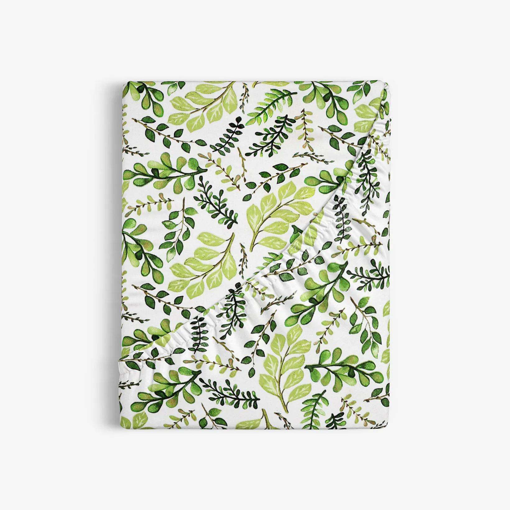 Kvetinový motív zelených lístočkov bude skvelou voľbou do Vašej spálne. Vďaka tomuto motívu bude vo Vašej spálni pokojná a nijako nerušená atmosféra pre čo najlepší odpdych. Bavlnená plachta (s napínacou gumou) je vyrobená zo 100% hladkej bavlny o gramáži 145 g/m 2 . Podkladom plachty je biela farba.