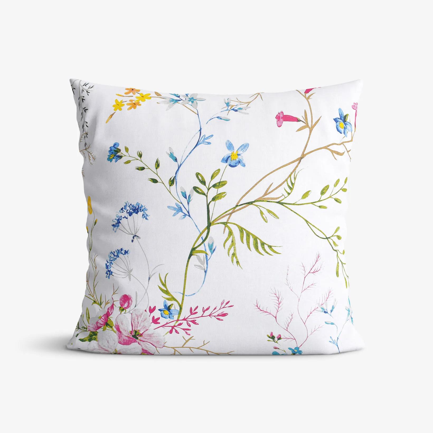 Bavlnená obliečka na vankúš s motívom farebných maľovaných lúčnych kvetov na bielom podklade (z oboch strán rovnaký motív). Obliečka je vyrobená z kvalitnej a príjemnej 100% bavlny. Je vybavená praktickým zapínaním na zips.