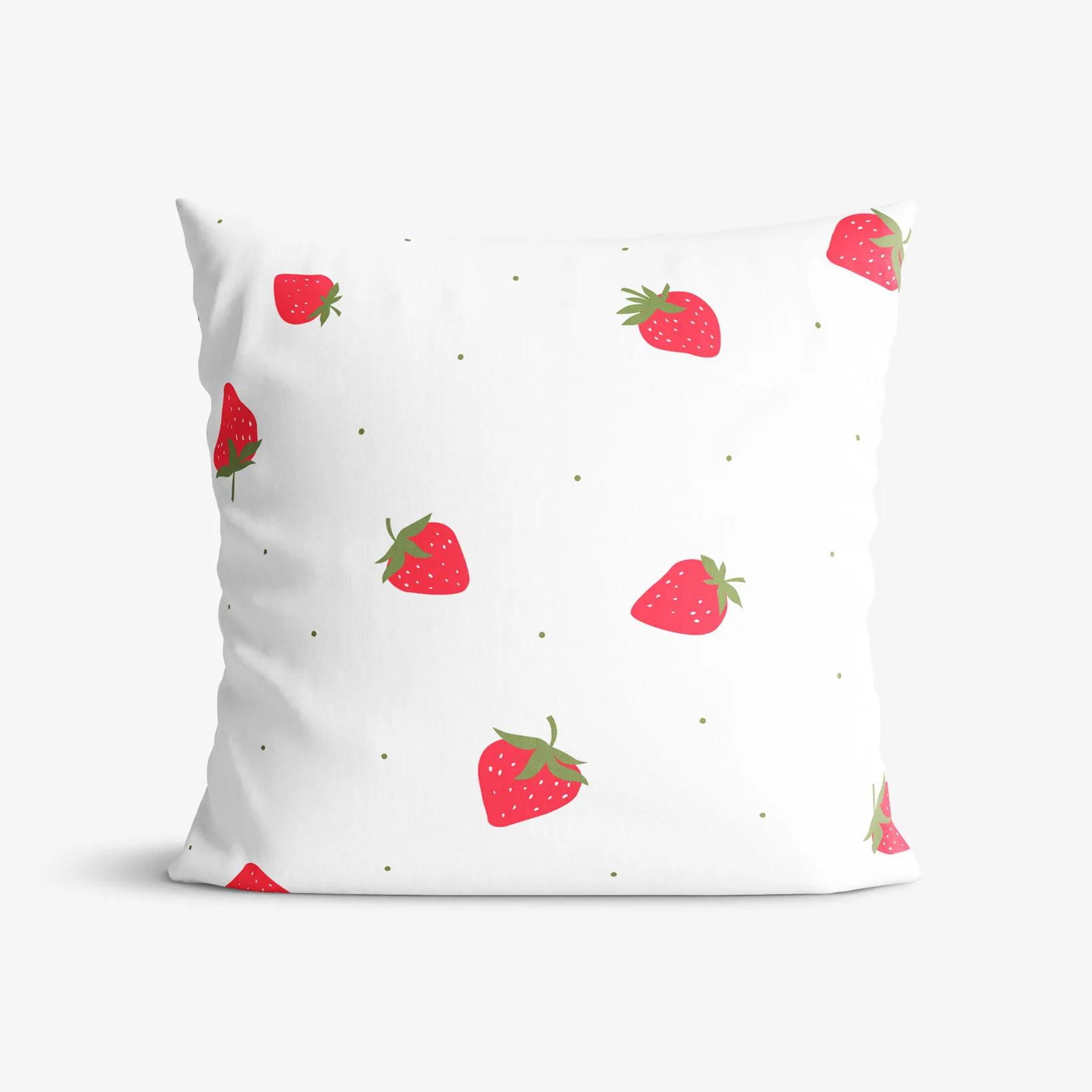 Bavlnená obliečka na vankúš so sviežim motívom jahôd s bodkami na bielom podklade (z oboch strán rovnaký motív). Obliečka je vyrobená z kvalitnej a príjemnej 100% bavlny. Je vybavená praktickým zapínaním na zips.