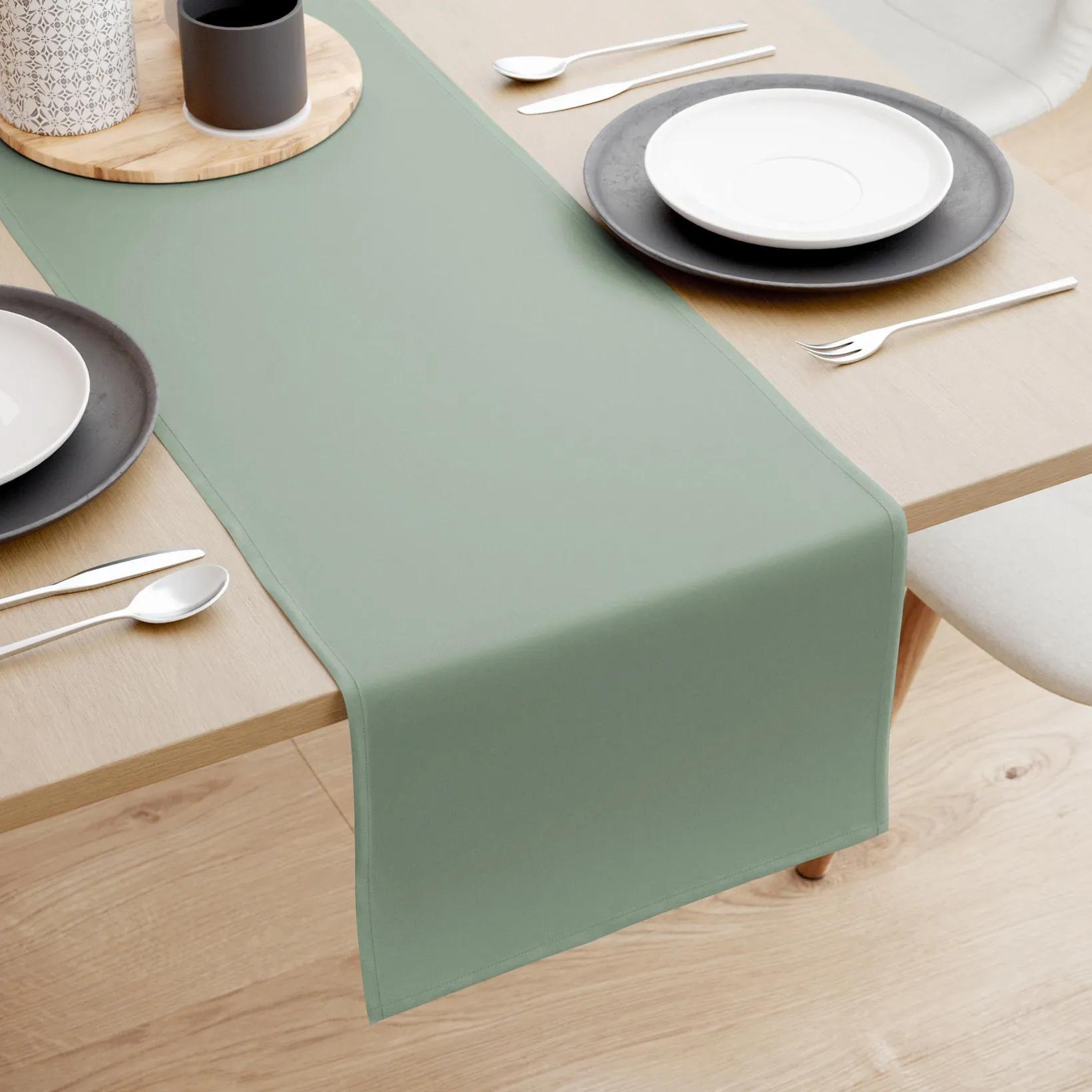 Šalviovo zelený bavlnený behúň na stôl ušitý z veľmi kvalitnej 100% bavlnenej látky o gramáži 145g/m2. Po celom obvode je behúň olemovaný. Je veľmi praktickým a moderným doplnkom jedálenského či konferenčného stola.